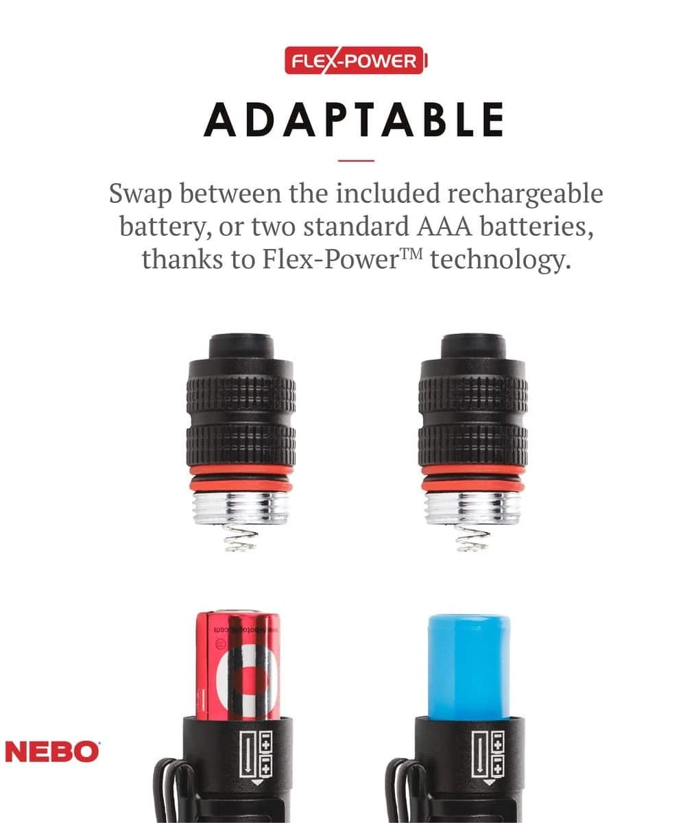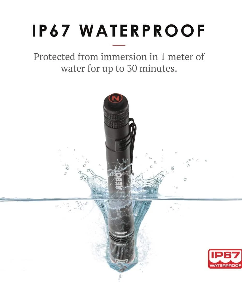 Anodized Aircraft Grade Aluminum; Impact Resistant; Waterproof And Protected From Immersion In 1 Meter of Water For Up To 30 Minutes; Detachable Steel Belt/Pocket Clip; 4X Adjustable Zoom; 3 Light Modes: Rechargeable Batteries- 360 Lumens, 120 Lumens And 360 Lumens Strobe/AAA Batteries- 100 Lumens, 30 Lumens And 100 Lumens Strobe; Soft Touch On Function; Rear Positioned On/Off Button; Comes With Lithium Ion Rechargeable Battery But Can Be Powered By 2 AAA Alkaline Batteries With Reduced Performance; Built in Micro USB Port; Measures Approximately: 6.3″ Compacted/6.5″ Extended; .7″ Diameter; Style #NEB-POC-0005