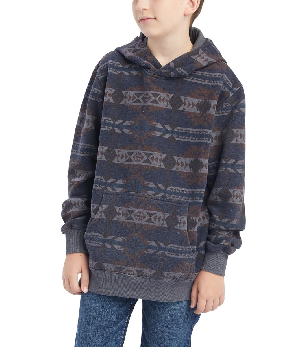 52% Cotton/48% Polyester; Attached Hood; Overdyed; Washed; Southwestern Print Matches Dad; Color: Maritime Blue Southwest; Style #10041693