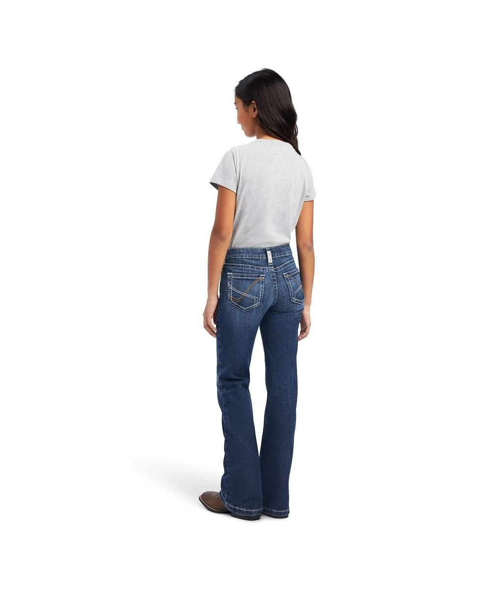 93% Cotton/5% Polyester/2% Spandex; 9.75 OZ Stretch Denim; Color Dresden; Five Pocket Style; Stitched Fashion Back Pockets; Slim Fitting Through Thigh; Bootcut; Durability And Stretch For Rodeo; All Day Comfort For School And Play; Style #10042215