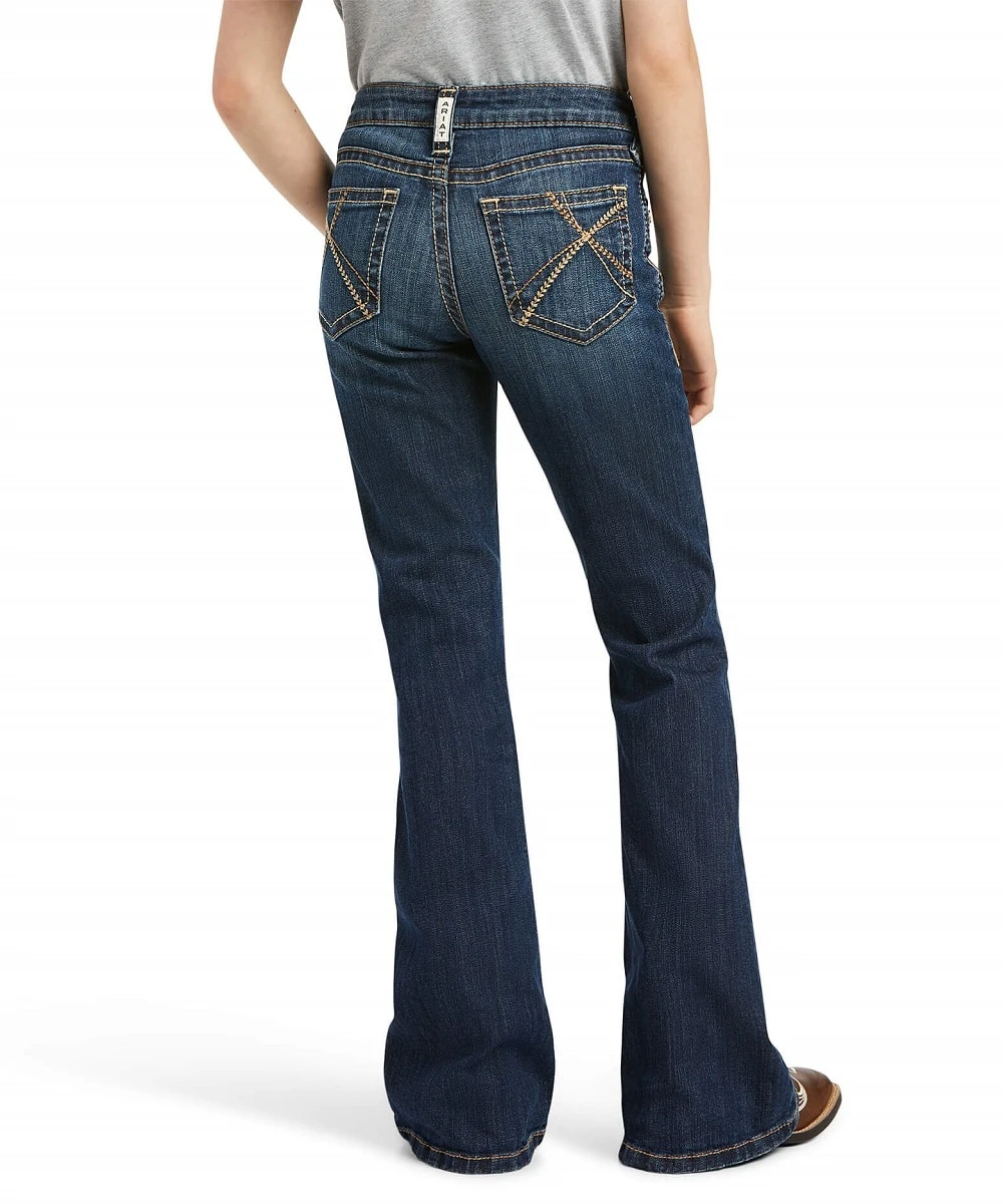 93% Cotton/5% Polyester/2% Spandex, 9.75 Oz. Performance Stretch Denim; Dark Wash; Whiskers; Fading; Five Pocket Styling; Fashion Back Pocket; Flared Leg; Color: Dresden; Style #10040808