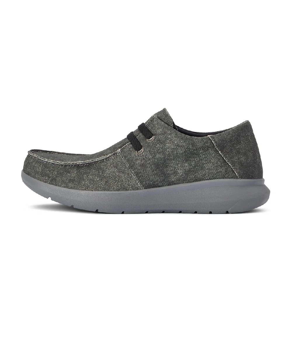 Canvas Fabric Upper; Breathable Cushion Insole; Easy On Elastic Lace Entry; Lightweight Flexible FLX Foam Sole; Color: Charcoal Canvas; Style #10038391