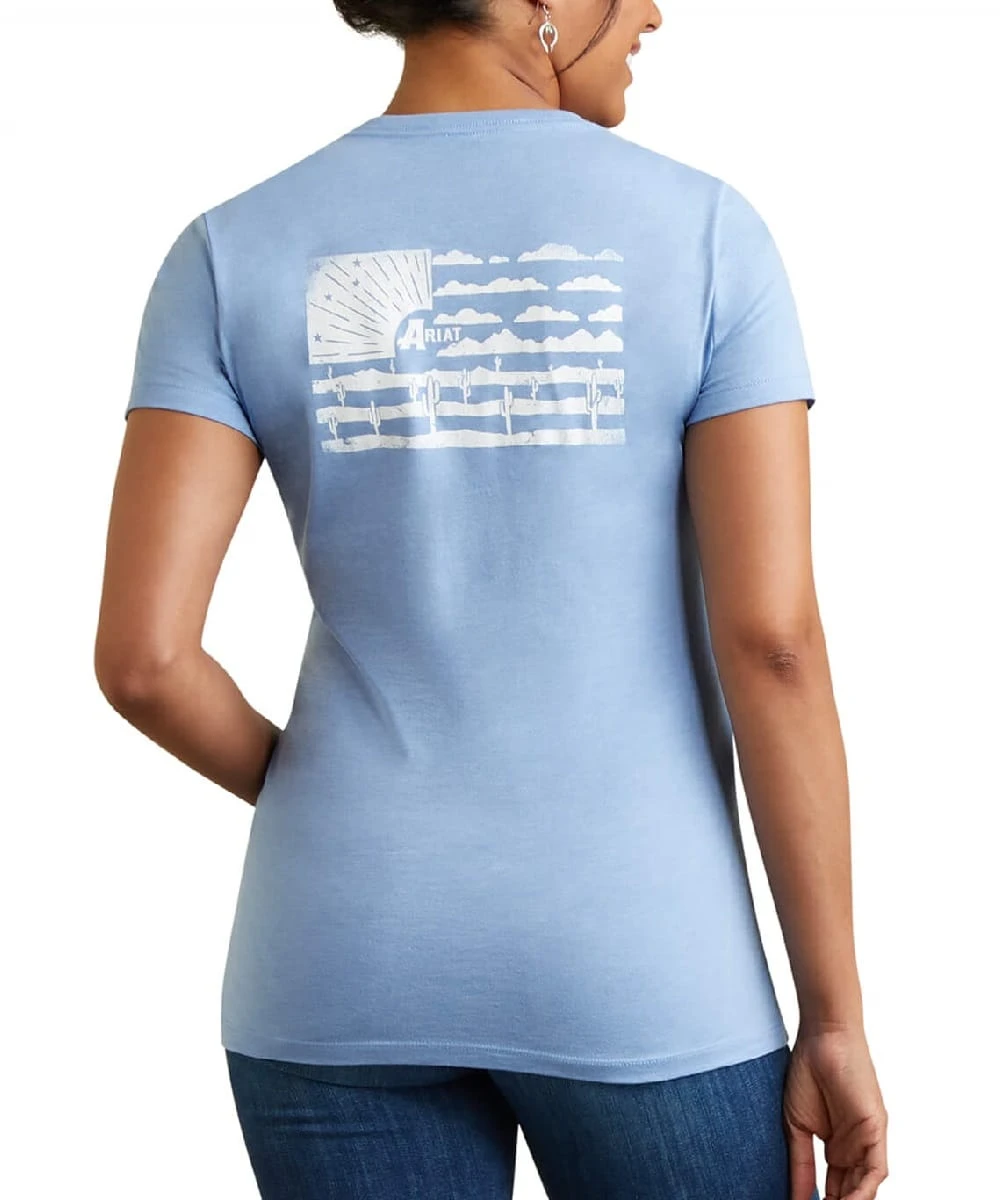 52% Cotton/48% Polyester; Short Sleeve; Crew Neckline; White Logo Screen Printing On Left Chest; White Desert Flag Graphic Print On Back; Color: Ocean Blue Heather; Style #10042787