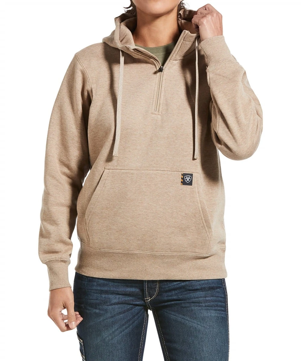 60% Cotton/40% Polyester; 10 Oz Fleece With Water-Repellant Finish; Stain-Repellant; Long Sleeve; Greater Arm Mobility For Freedom Of Movement; Ribbed Cuffs And Hem; Embroidered Logos; Hidden Media Pocket; Modern-Style Kangaroo Pocket; Half-Zip Styling For Easier In/Out Access; Color: Dark Oatmeal Heather/Tan; Style #10032912