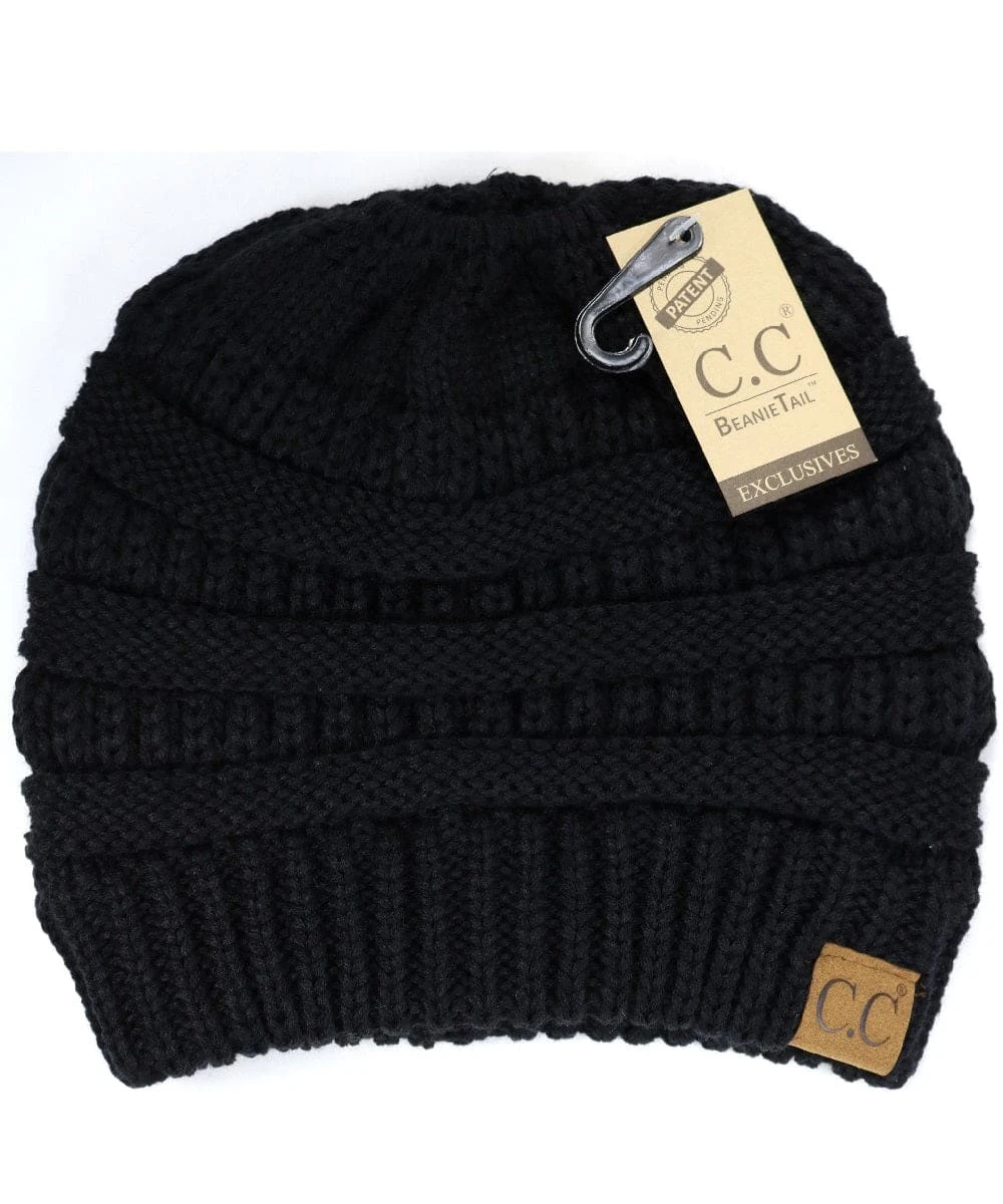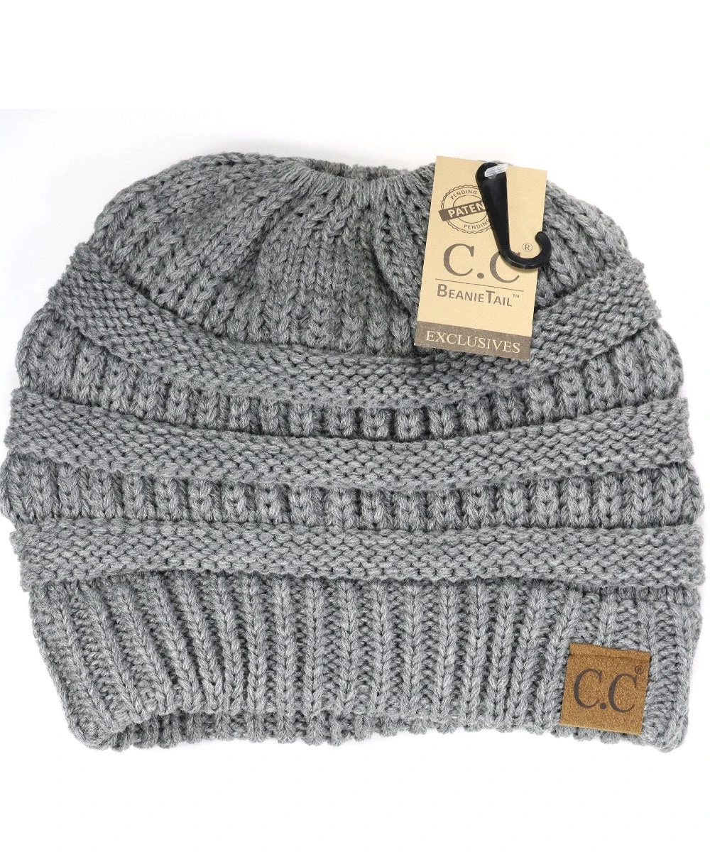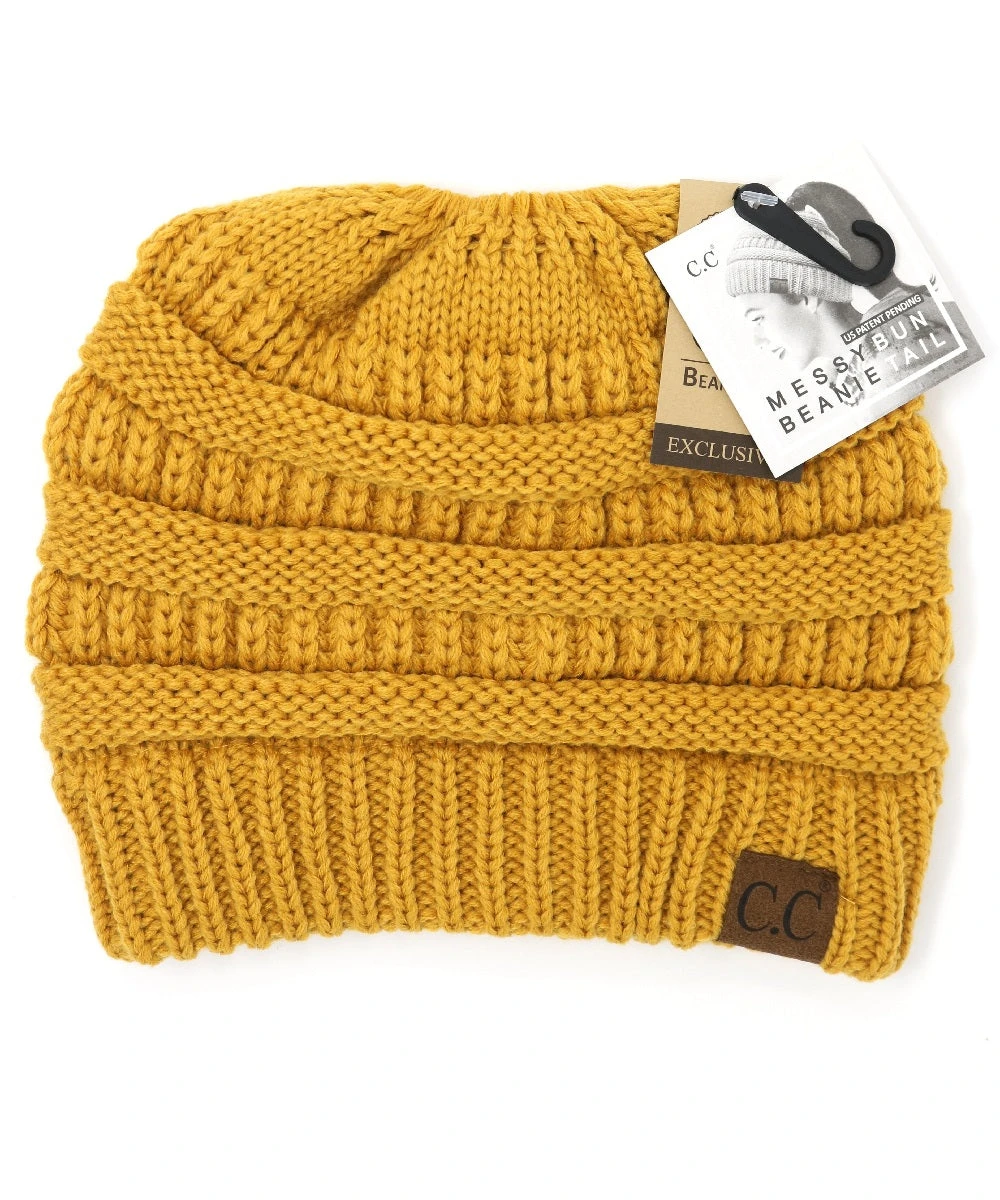 Solid Color; Cable Knit Beanie; Features An Elastic Opening In the Middle To Pull Your Hair Through; Style #MB20A