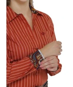 Printed Cotton Plain Weave; Classic Fit; Long Sleeve; Button Down Collar, Placket, And Cuffs; White Buttons; Single Open Chest Pocket With Logo Embroidery; Color: Blue/White/Orange Paisley Print; Style #MTW7060273