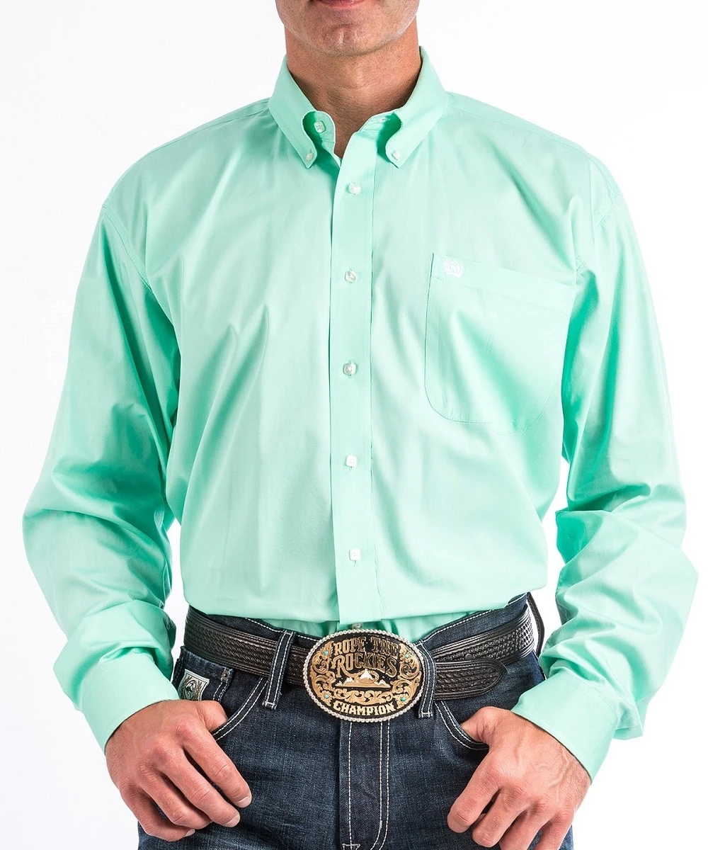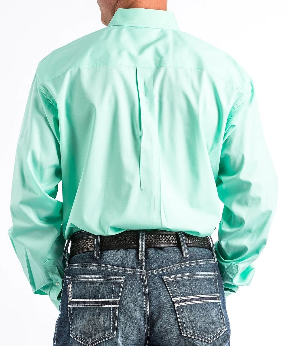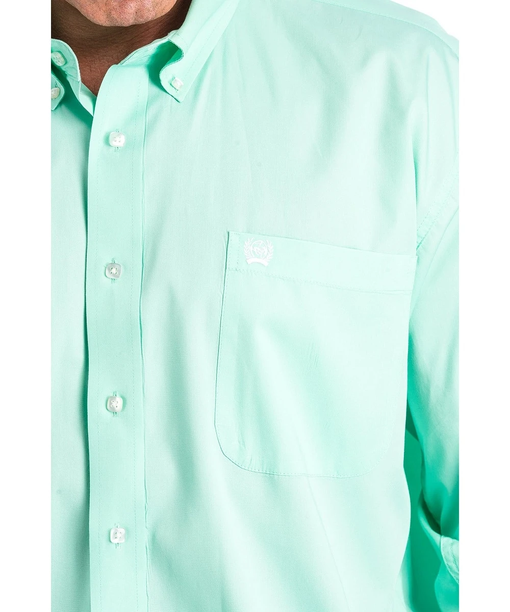 Solid Cotton Plain Weave; Classic Fit; Long Sleeve; Button Down Collar, Placket, And Cuffs; Single Open Chest Pocket With Logo Embroidery; Straight Back Yoke With Pleat; Size: 3X; Color: Mint Green; Style #MTW104237X