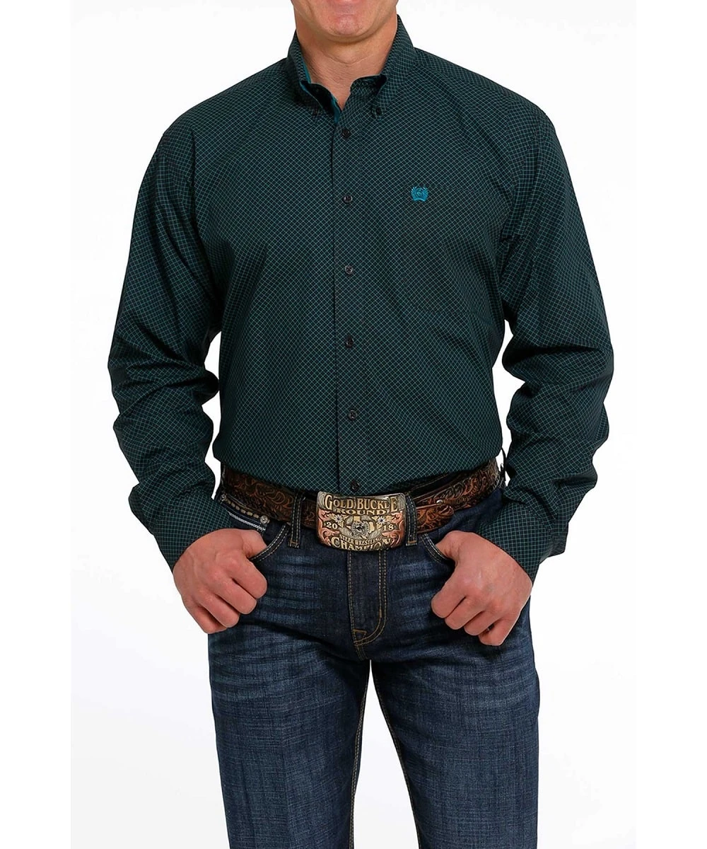 Cotton; Black Windowpane Print With Solid Teal Contrast Trim; Button Down Collar; Open Left Front Pocket With Embroidered Logo; Black Buttons; Classic Fit; Style #MTW1105495
