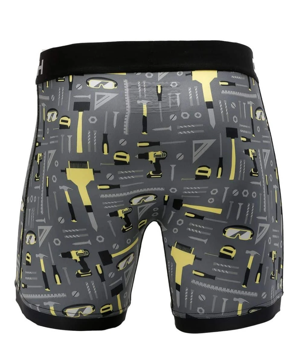 Poly-Spandex Blend; 6″ Boxer Brief; Jacquard Logo Waistband; Contrast Topstitch; No Ride Leg Seams; Tag Free Design; Antimicrobial Treatment; Four Way Stretch Moisture Wicking Fabric; Color: Charcoal; Style #MXY6002025
