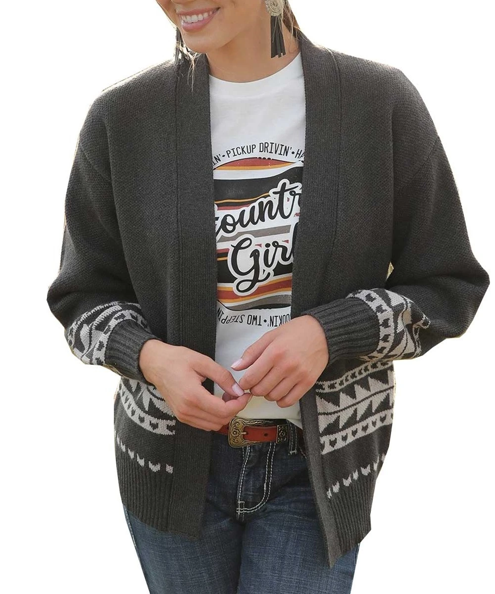 60% Cotton/40% Acrylic; Long Sleeve; Relaxed Silhouette With An Open Front; Light Grey Aztec Skull On Back; Color: Charcoal; Style #CWK7411001