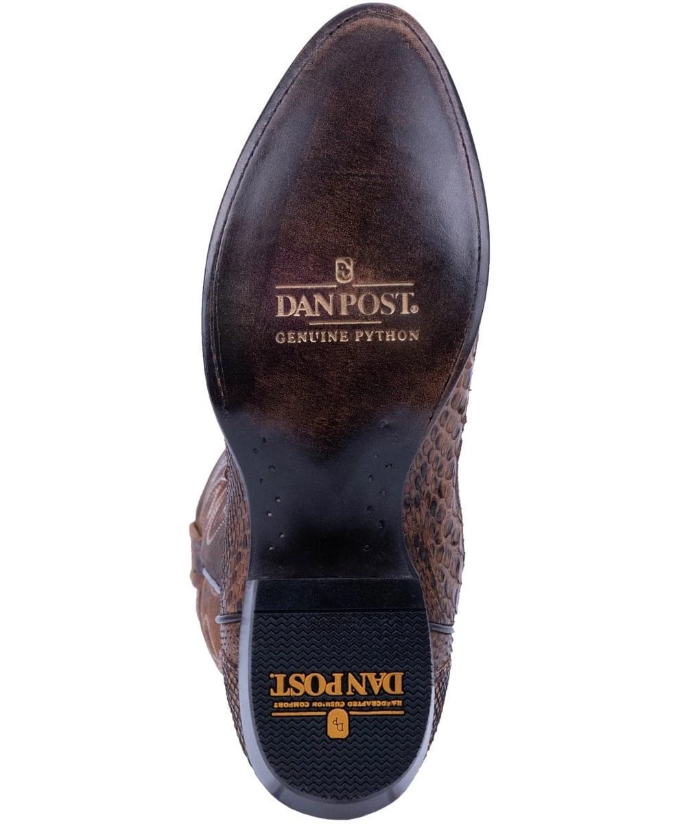 13″ Boot; Genuine Python Leather; Leather Lining; Multi Row Tonal And White Accent Stitching; Removable Antibacterial And Antifungal Soft Strike Orthotic; 1 3/8″ Cowboy Heel; Round Toe; Leather Outsole; Style #DP3037