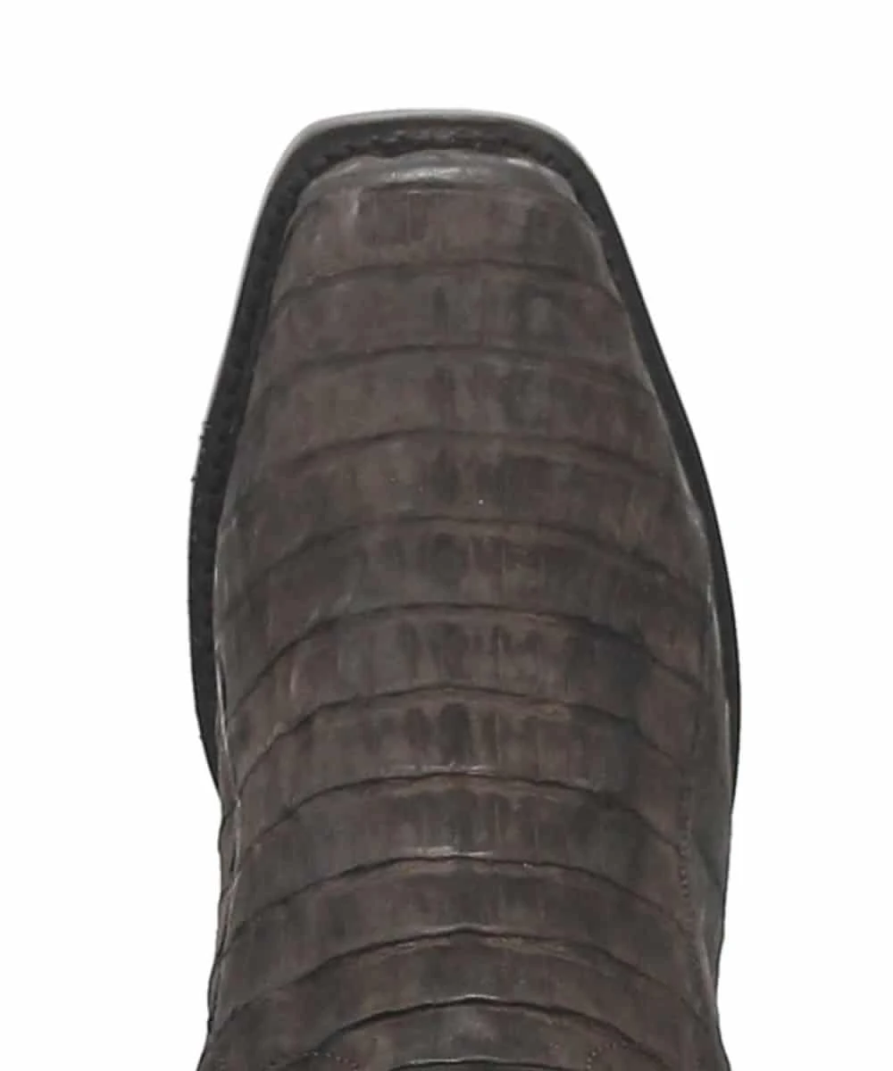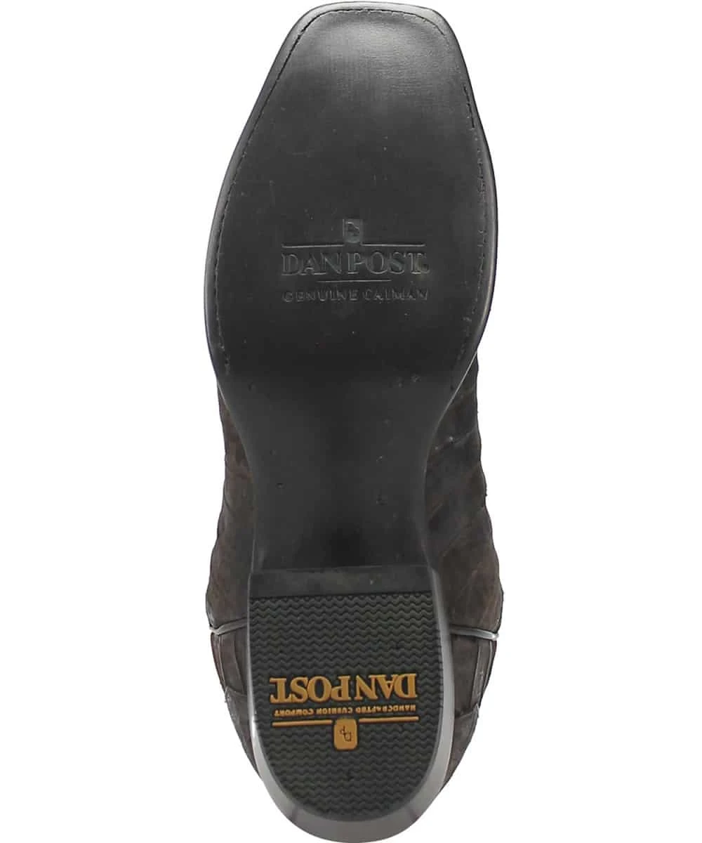 13″ Boot; Dark Brown Caiman Foot; Brown Leather Upper; Removable Soft Strike Orthotic Insole; Cowboy Heel; Cowboy Square Toe; Leather Outsole; Style #DP3089