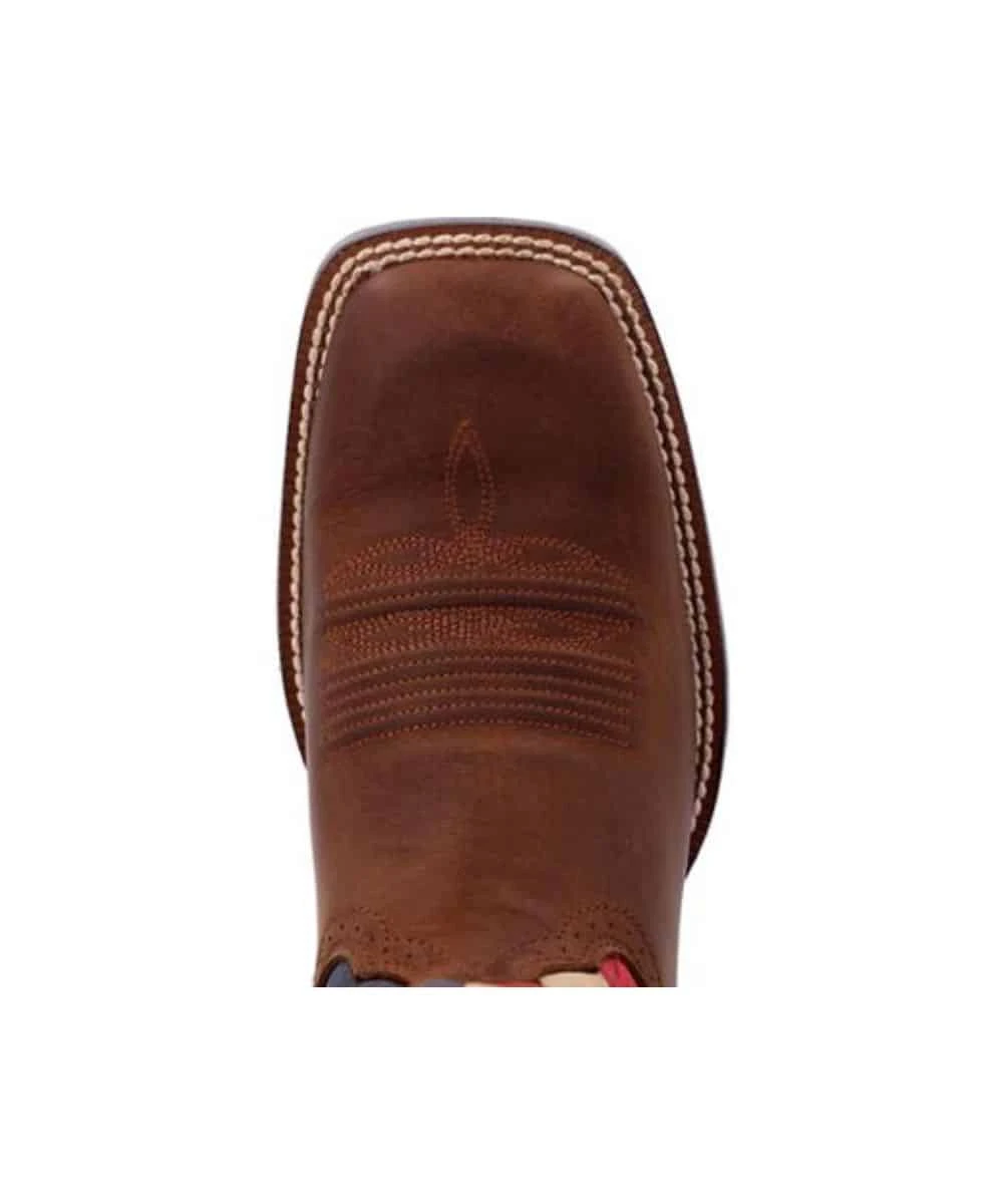 Full-Grain Leather Foot And Collar; Fiberglass Shank; Color: Brown With Union Flag; 11″ Upper; Calf Circumference: 15″; Littleway Stitch Forepart And Shank Area For Ultimate Durability; Square Toe; Heel: 1-1/2″ Stockman; Leather Wrapped Heel; Rubber Outsole With Two-Tone Detailing; Double Row Sole Stitch; Durango Advanced Comfort System With Removable Footbed That Contains Anti-Microbial Mesh To Prevent Odor Causing Bacteria, Shock Pads To Alleviate Pressure, And Airflow Channels;