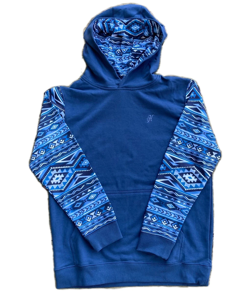 60% Cotton/40% Polyester; Signature Soft Feel; Double Lined Hood; Reinforced Cuffs And Waistband; Strengthened Kangaroo Pocket; Back Yoke Detail; Standard Fit;Â Light Blue, Dark Blue And White Aztec Print Sleeves And Hood Lining; Embroidered Hooey H Logo On Chest; Color: Navy; Style #HH1191NVAZ-Y