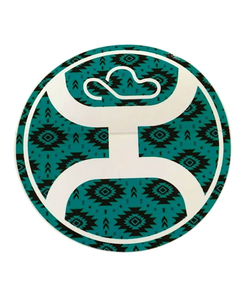 4″ Diameter; Turquoise With Black Aztec Design; White Hooey 2.0 Logo Sticker; Style #ST1006TQWH