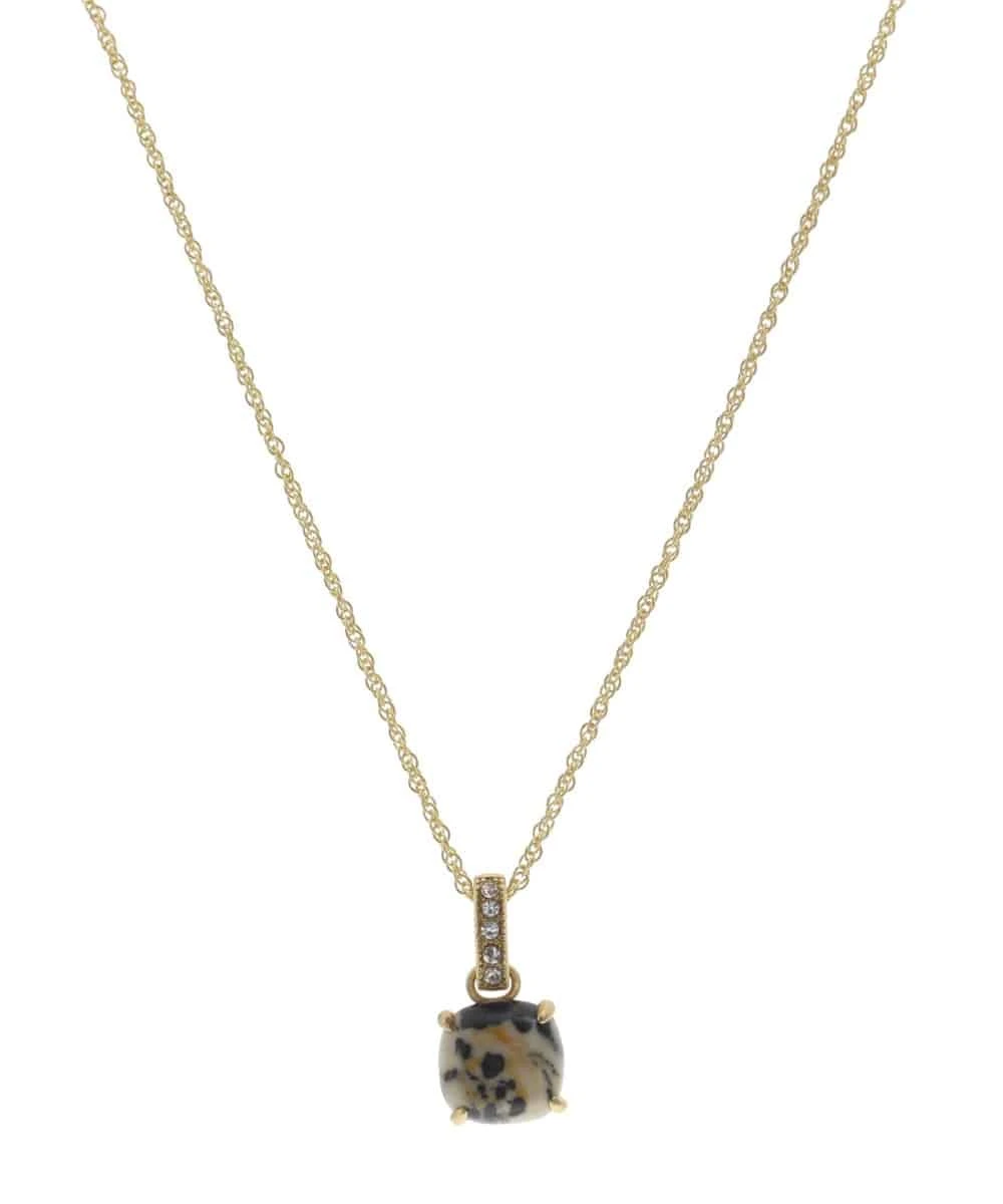 Dalmatian Stone Pendant With Cubic Zirconia Link; 16″ Chain; 3″ Extender; Gold Finish; .5″ Pendant; Style #JM5731N-1