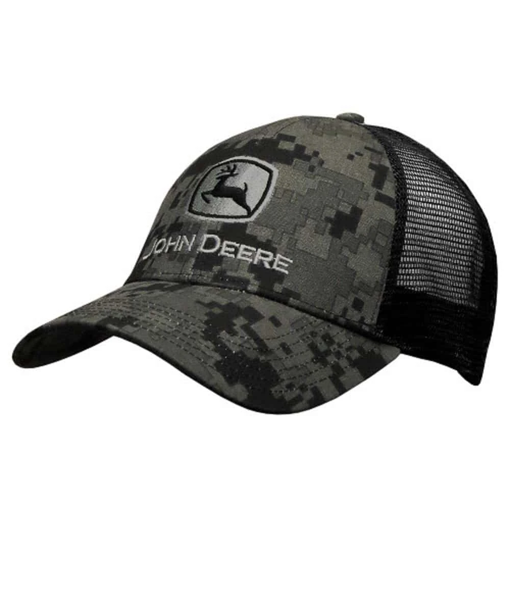Six Panel Construction; Black Digital Camo Front And Bill; Black Mesh Back; John Deere Logo And Name On Front Center; Snap Back Closure; Style #13080407