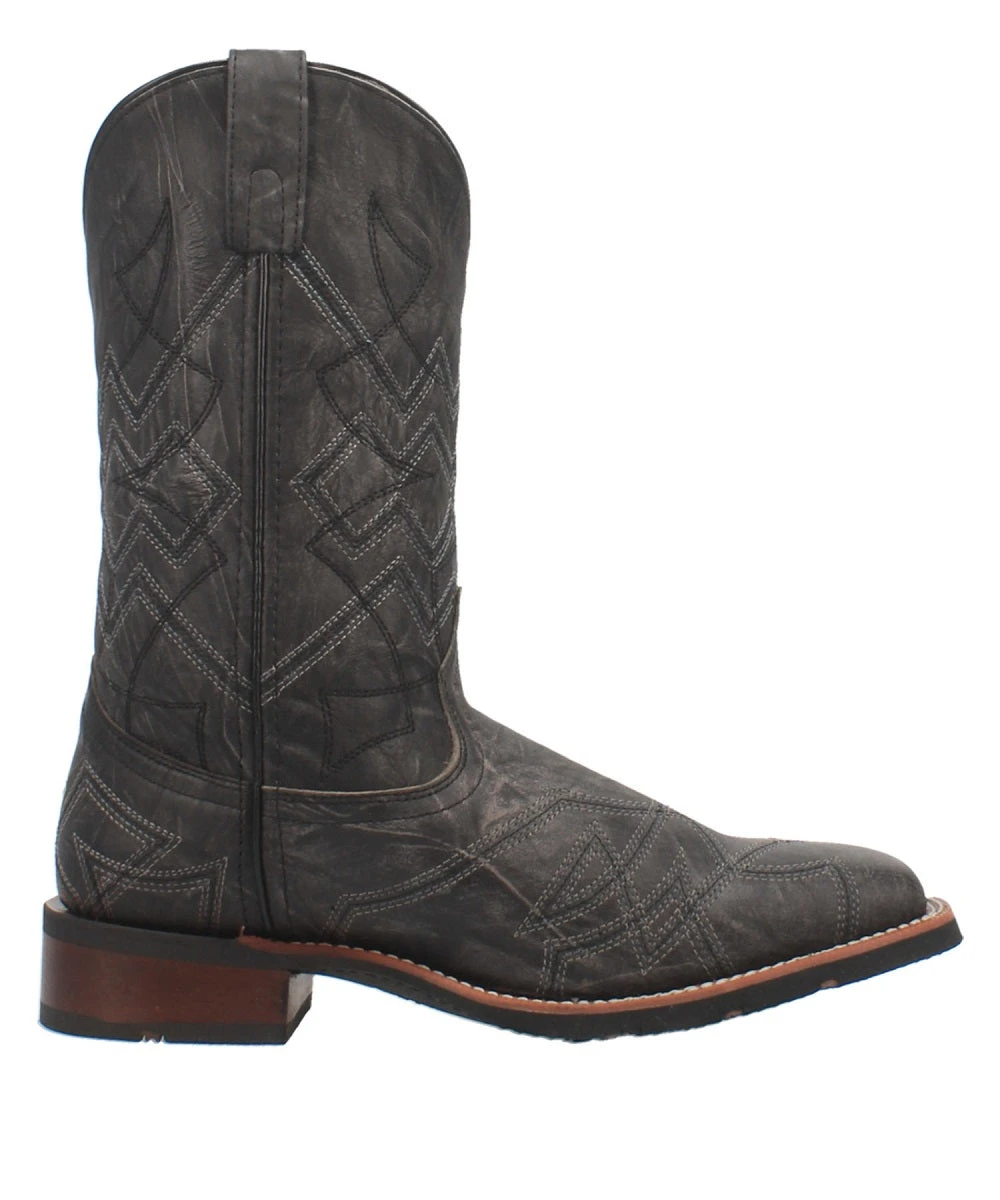 12″ Boot; Distressed Black Leather; Removable Orthotic Insole; Accent Embroidered Stitching On Shaft And Vamp; Double Stitch Welt; Broad Square Toe; Stockman Heel; Cowboy Approved II Outsole; Style #7927