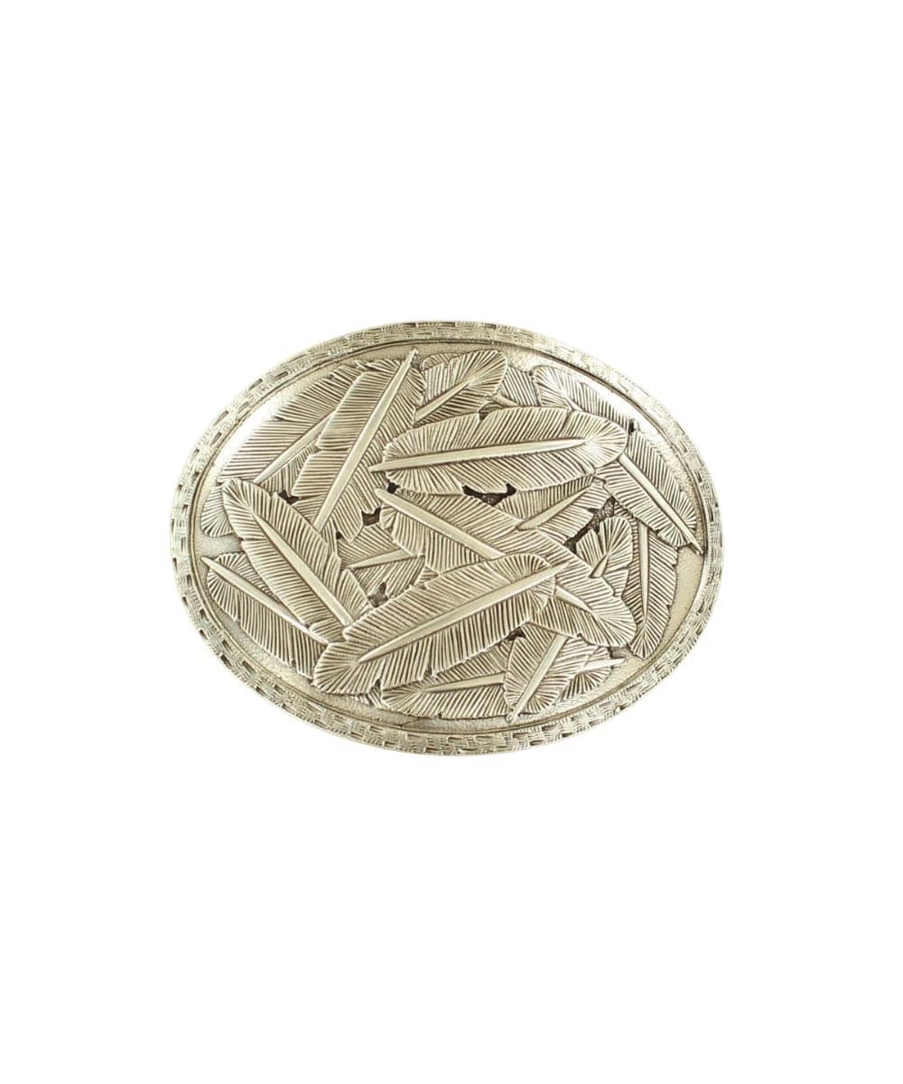 Silver; Scattered Feather Design; Oval Shape; Measures Approximately: 3″ x 3-7/8″; Style #37715