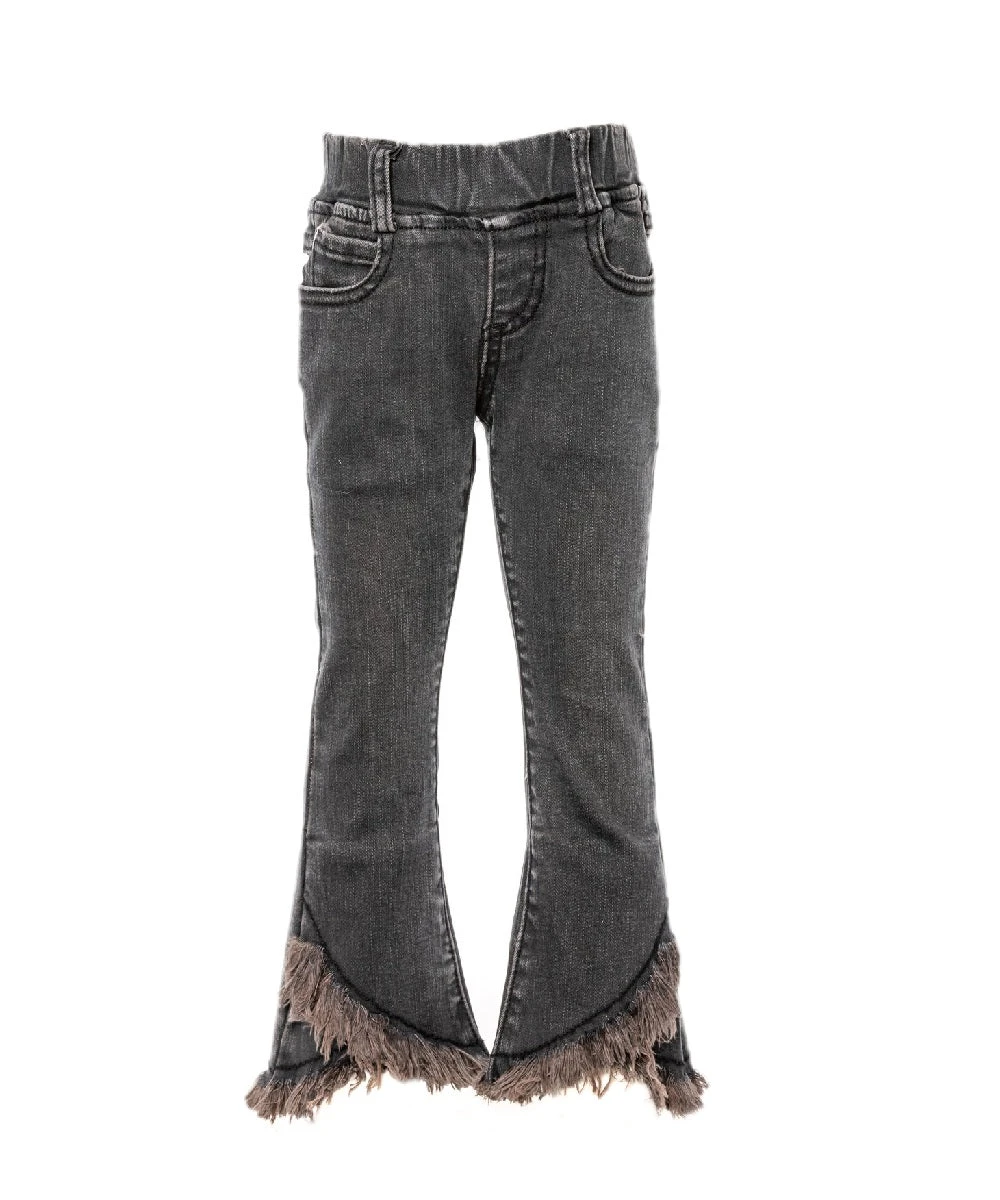 Cotton-Poly-Spandex Blend Stretch Fabric; Elastic Waist; Five Pocket Styling;Â Criss Cross Raw Hem Leg; style #FP0014