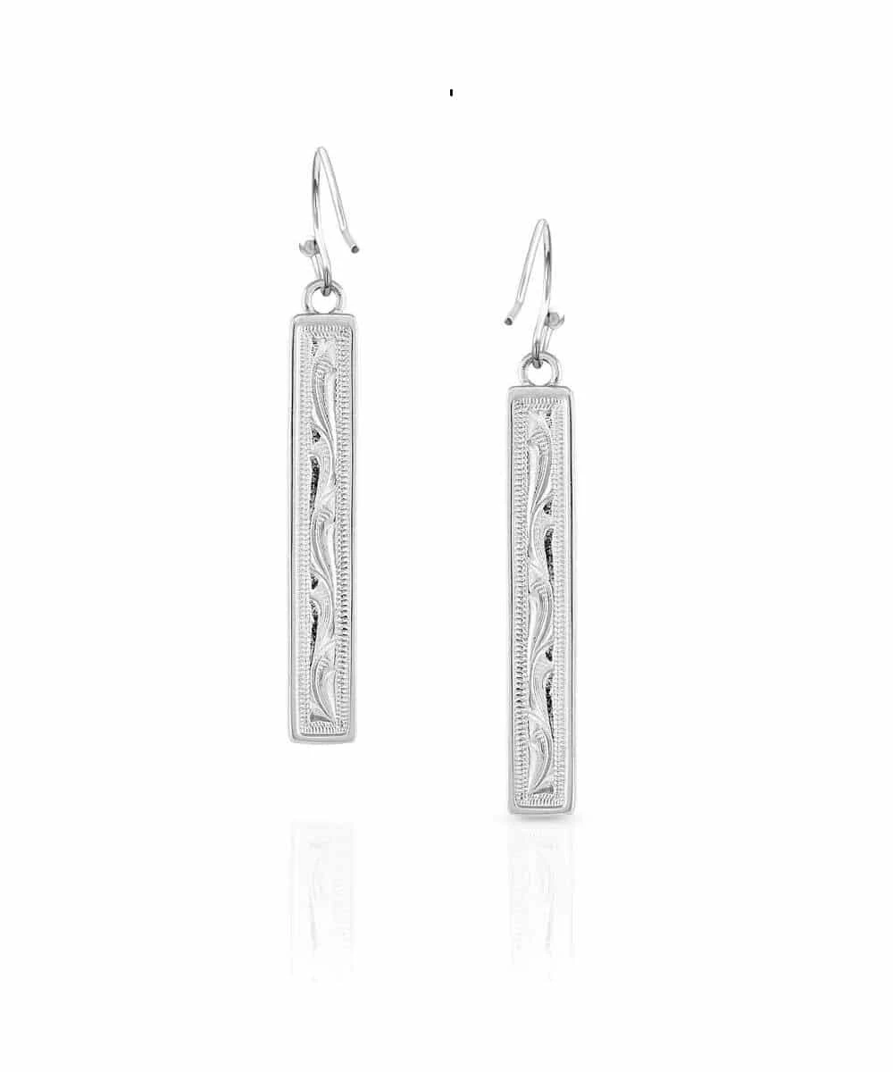 Officially Licensed; Created To Honor Wrangler’s 75th Anniversary; Classic Bar Shape; Hangs From Hypoallergenic French Wire; Bar Adorned With Rose, Turquoise, Navy, And Deep Blue Colored Stones Held Together And Laid With A Silver Tone; Measures Approximately: .22″ W X 1.84″ H; Materials: Rhodium Over Brass Base, Lapis, Appetite, Agate And Rose Quartz; Style #WER5093