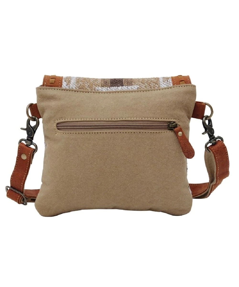 Canvas And Leather; 10″ Width; 8.5″ Height; Flap Closure With Leather Border Detail; Zippered Pocket On Back; Southwestern Print On Front; Detachable And Adjustable Shoulder Strap; Style #S-6169