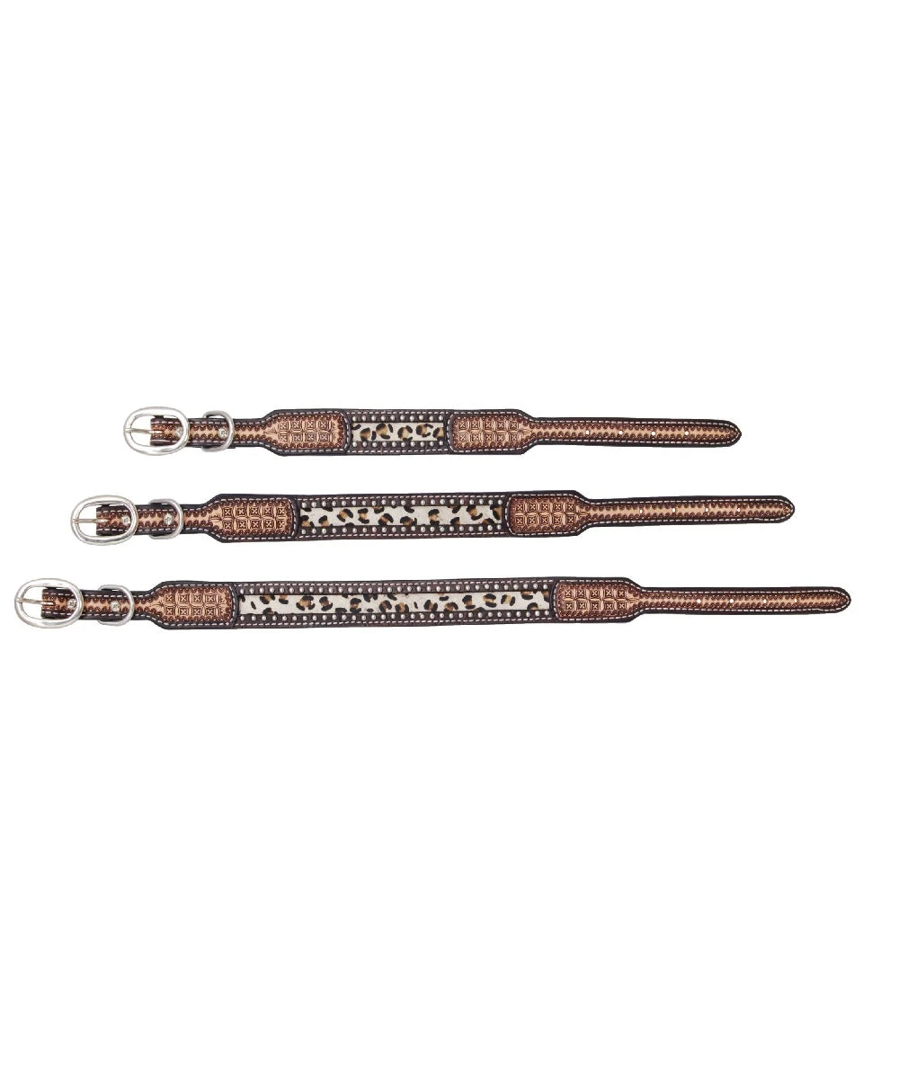 Leather; Stainless Steel Hardware and Studs; Light Oil; TT Finish; Waffle Print Tooling; Leopard Print Hair On Inlay; Size Small; Style #RTDC401-S
