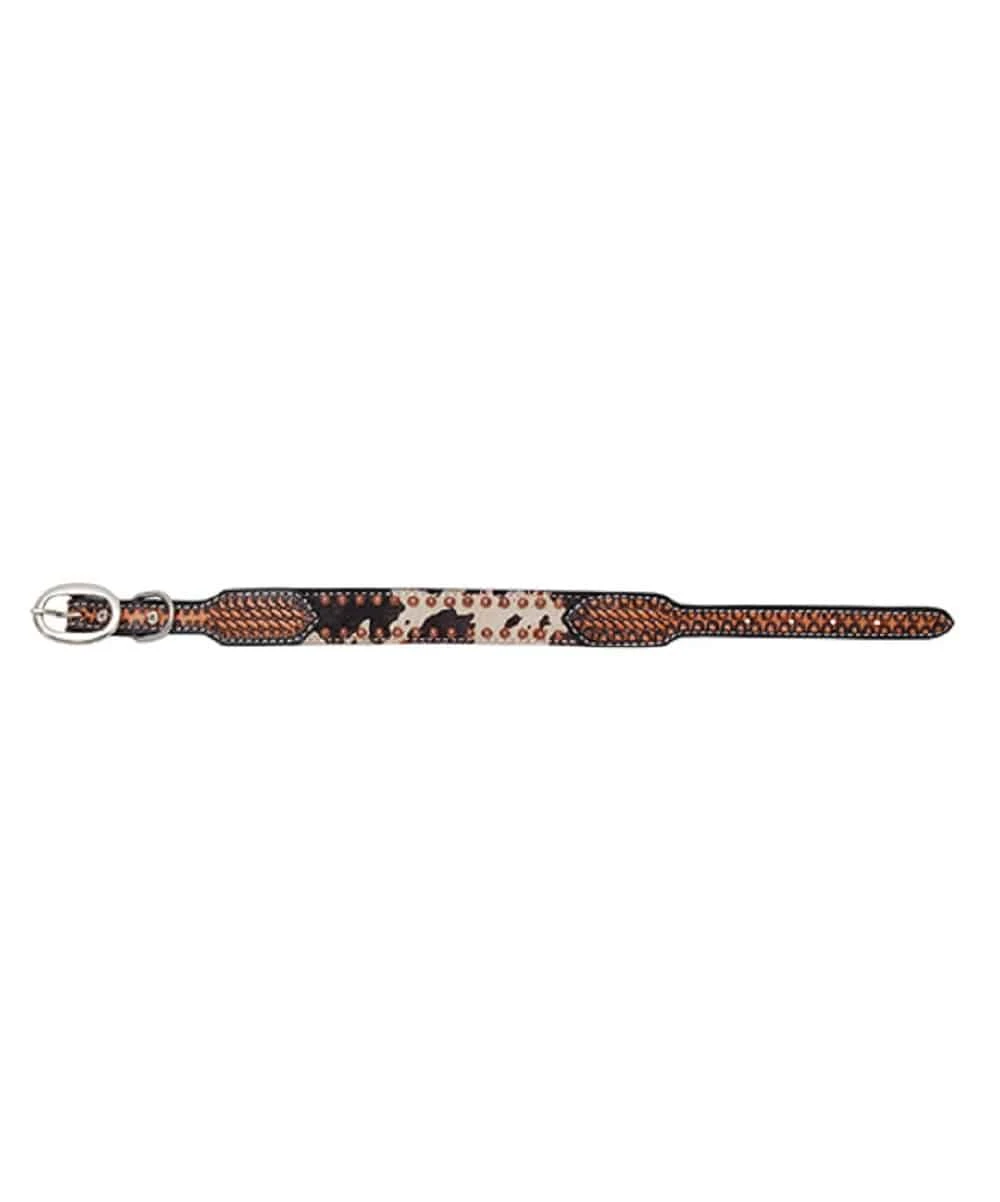 Size Medium; 15″-17″; Peppered Hide; Basket Stamp Tooling; Copper Flower Accent Dots; TT Finish; Silver Tone Buckle; Style #RTDC415-M