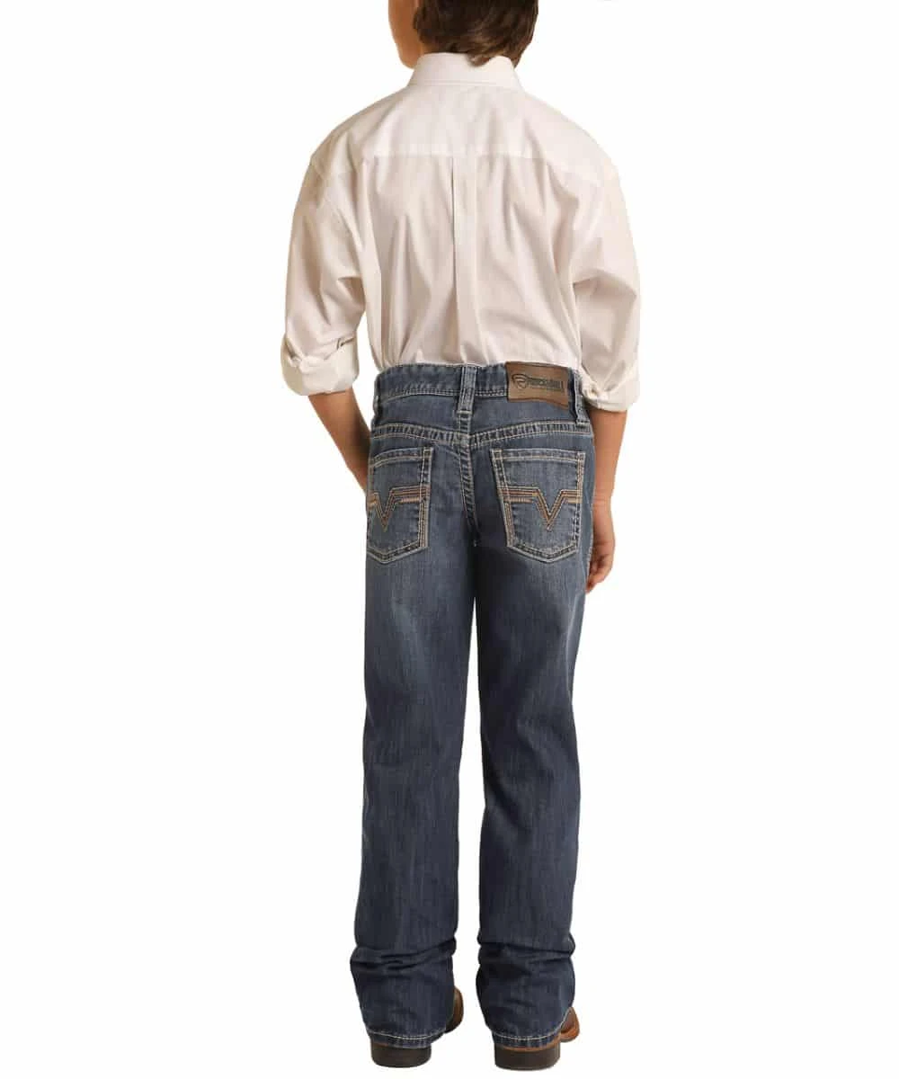 99% Cotton/1% Spandex; ReFlex Stretch Denim; Relaxed Fit; Zip Fly With Button Closure; Five Pocket Styling; Fashion Stitched Back Pockets; Whiskering Detail; Medium Vintage Wash; Boot Cut Leg; Style #BB-1789