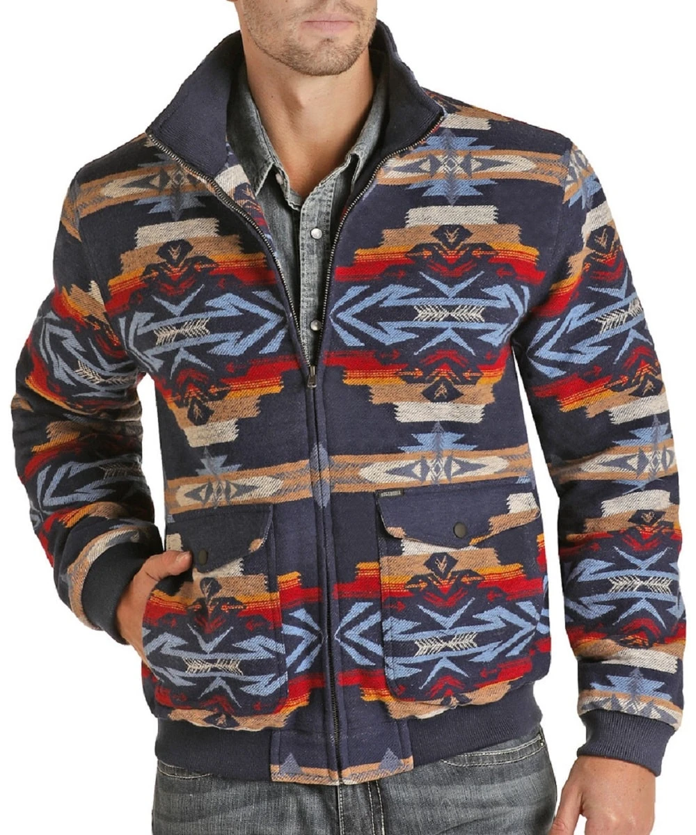 100% Cotton/Heavy Jacquard Cotton; 100% Poly Lining; Allover Aztec Print; Zippered Front Closure With Zippable Collar; Two Snap Flap Hand Pockets; Bomber Coat; Style #RRMO92RZX3
