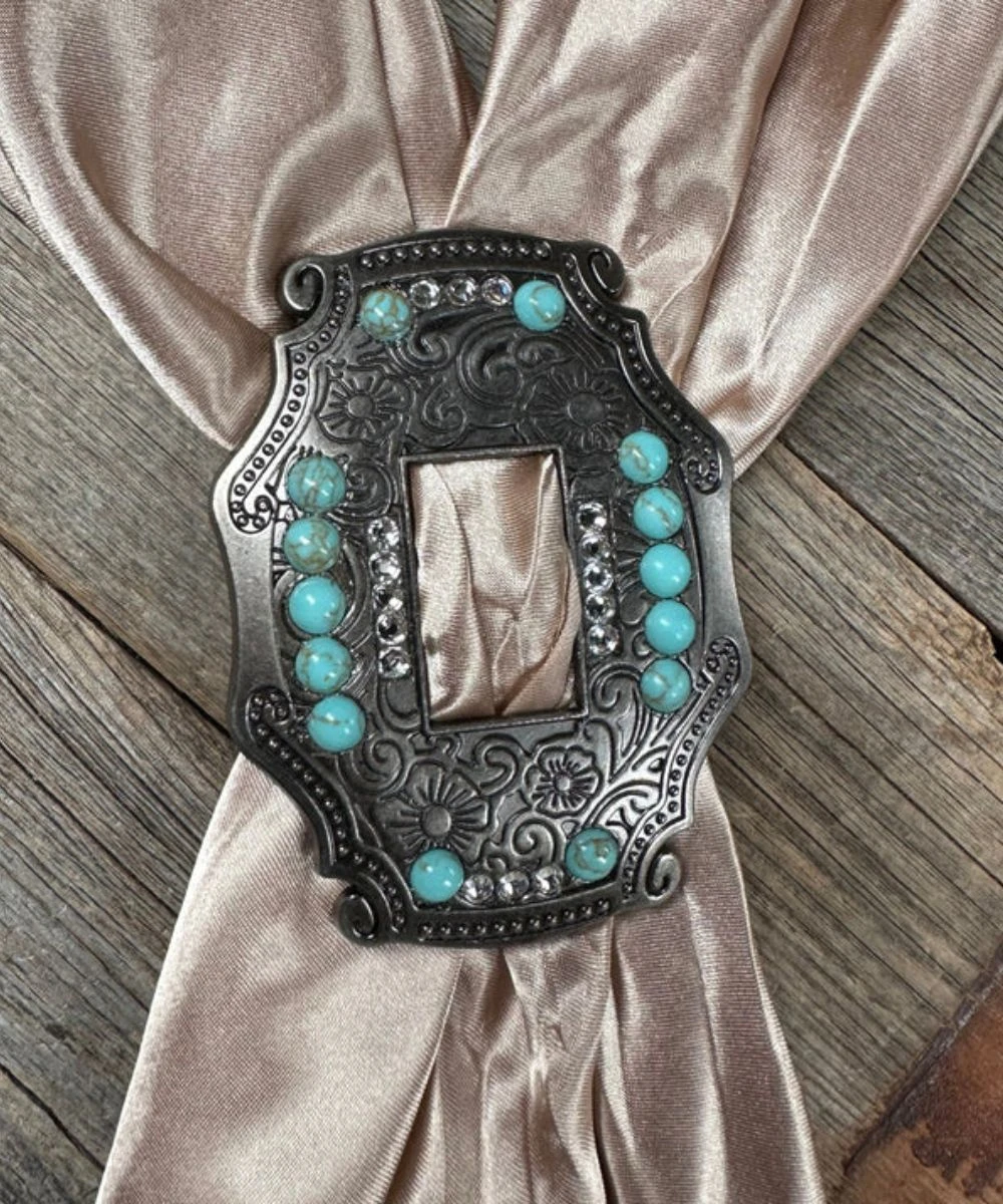 Extra Large Antique Silver Buckle Slide; Decorated With Clear And Fashion Turquoise Howlite Stones; Measures Approximately: 3.75″ L x 2.75″ W; Style #SASTQCL