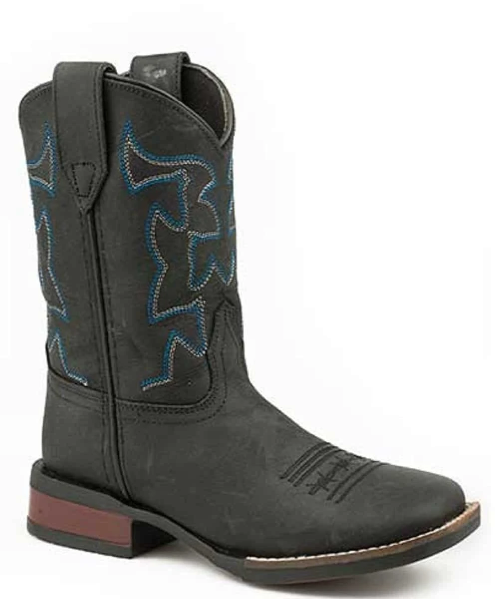 Black Leather Vamp And Shaft; Hidden Cow Shape Embroidered Shaft; Square Toe; TPR Outsole; Style #09-018-0911-1201