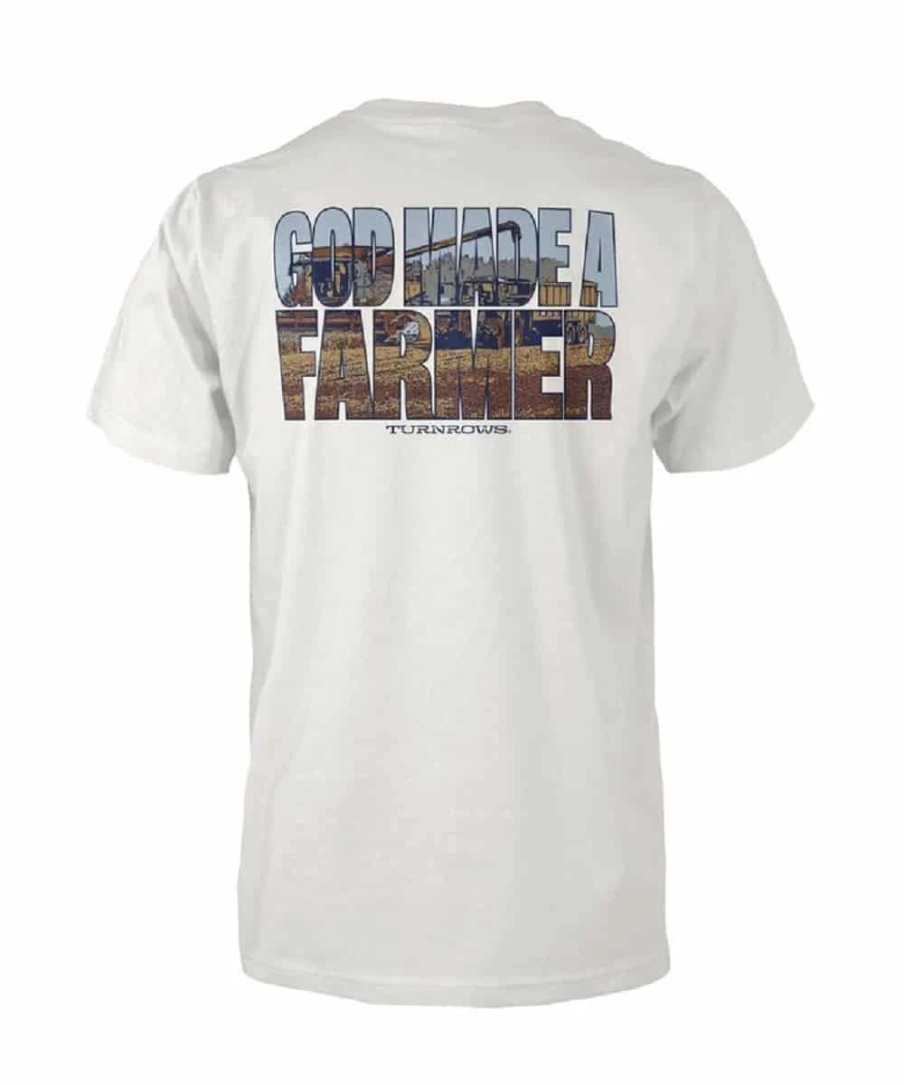 100% Heavy Weight Cotton; Crew Neck; Front Open Chest Pocket; Back Print Of Combine Outlined With The Words: God Made A Farmer; Style #TRW61CP0MAF