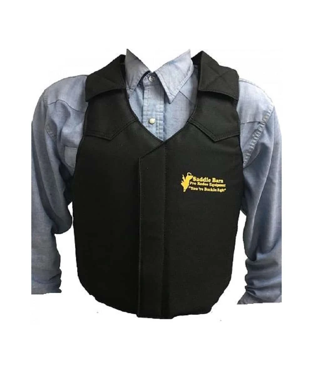 Pro Rodeo Protective Vest Has Tough Cordura Outer Shell And High Density Foam; Leather Pockets And Trim With Velcro Adjustments; Logo Patch On Chest; Color: Black; Style #10-40