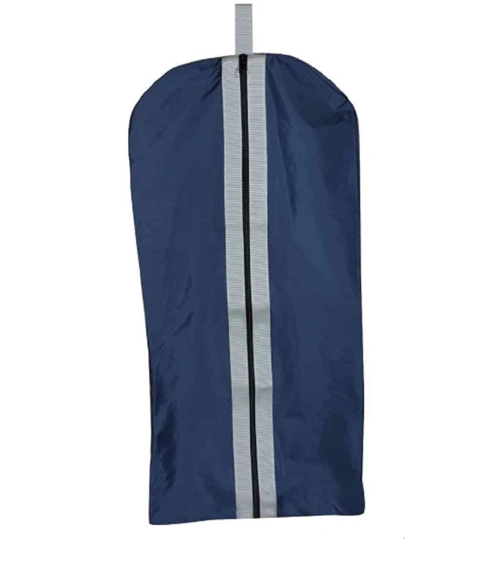 Breathable 420 Denier Nylon Outer, All With Silver Binding; Lightweight With Nylon Web Carry Handles; Exterior Loop Makes It Easy To Hang; Interior Plastic Hook And Loop; Organizes Show Gear And Keeps Contents Clean And Dust Free; Ideal For Awards And Can Be Embroidered Or Screen Printed Easily; Full Zip Closure; Color: Navy/Gray; Super Value Offers Super Protection And Makes Transport Super Easy; Style #10724