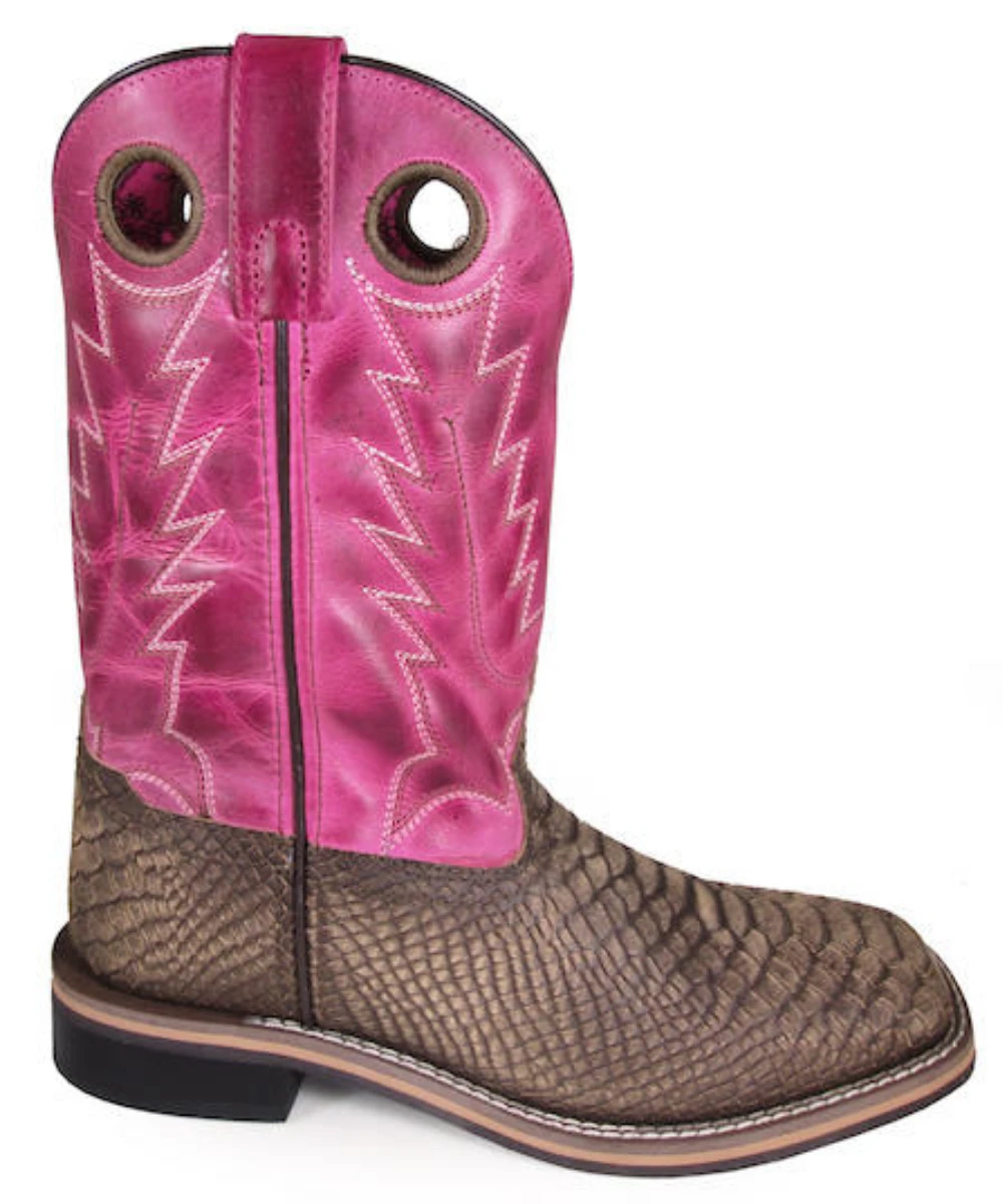 Square Toe; Rubber Sole; Block Heel; Pink Shaft With Finger Pulls; Printed Brown Foot; Style #6029