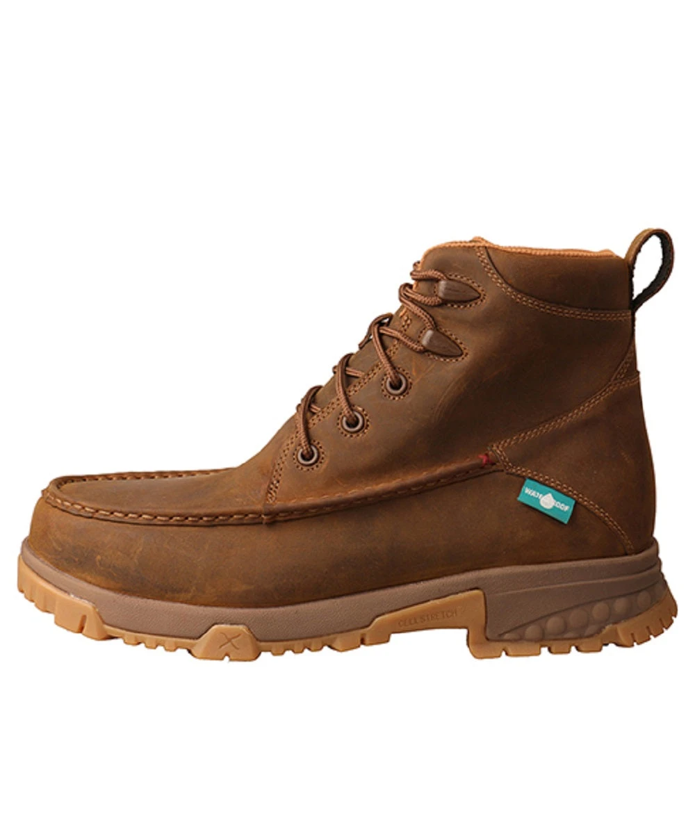 6″ Shaft; Full Grain Leather Upper; Waterproof Interior Lining; Leather Pull Tabs; Removable, Moisture Wiking Antibacterial And Machine Washable Footbed; Molasses Infused EVA Midsole Integrated With Twisted X Patented CellStretch Comfort Technology And Nylon Glass Fiber Shank Provides Long Lasting Comfort, Stability And Durability; Nano Composite Safety Toe Made With Carbon Nanotubes Woven Together To Create One Of The Strongest And Most Lightweight Safety Toes; Nano Composite Safety Toe Meets Or Exceeds ANSI ASTM F2413-18M/I/C And Electrical Hazard Standards; Oil And Slip Resistant Molded Rubber Outsole Features Features Sloped Heel Kick Which Allows For More Comfortable Transition From Heel To Ball Of The Foot; Style MXCNW01