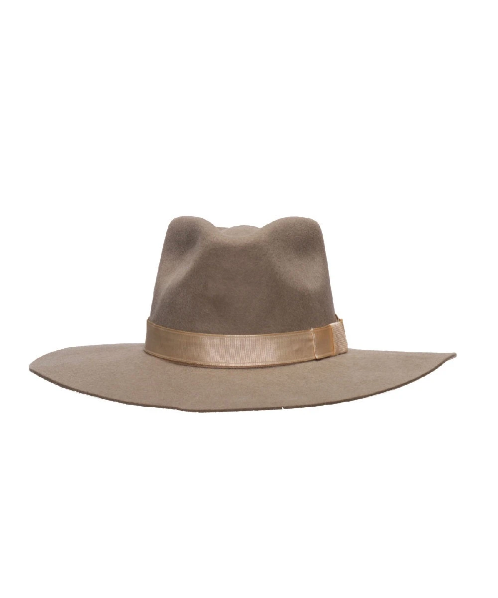 Felt Construction; 3 3/4″ Brim; Pinch Front Crown; Matching Mushroom Ribbon Hat Band; Style #T78100287