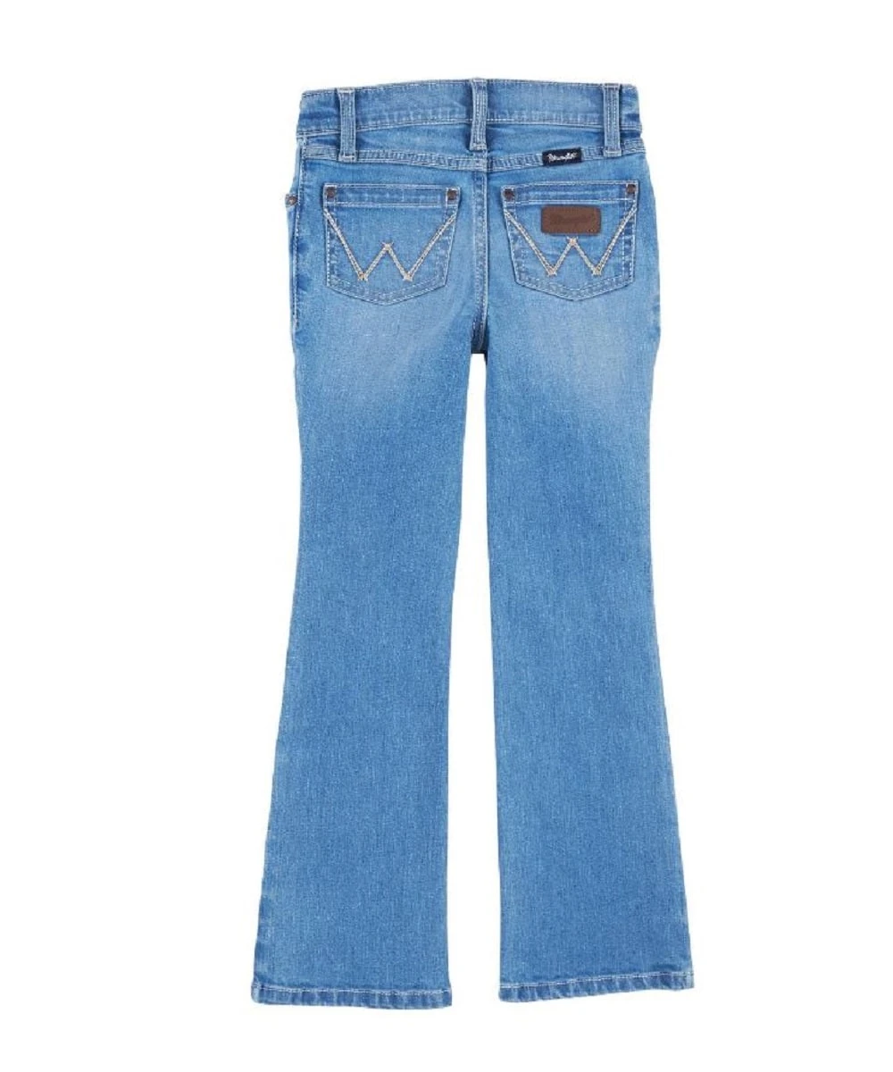 98% Cotton/2% Elastane, 10.5 Oz. Denim; Mid Light Wash; Low Rise; Regular Fit; Contour Waist Band; Adjust To Fit Waist Band; Five Pocket Styling; Hip Pocket Embroidery; Wrangler ‘W’ Back Pockets; Whiskers; Fading; Boot Cut; Style #112315035