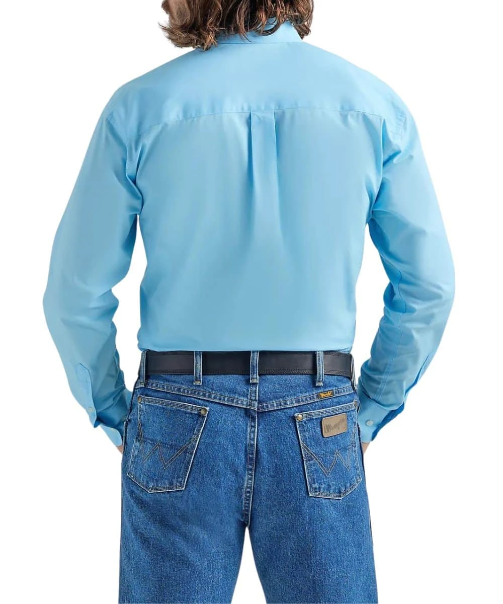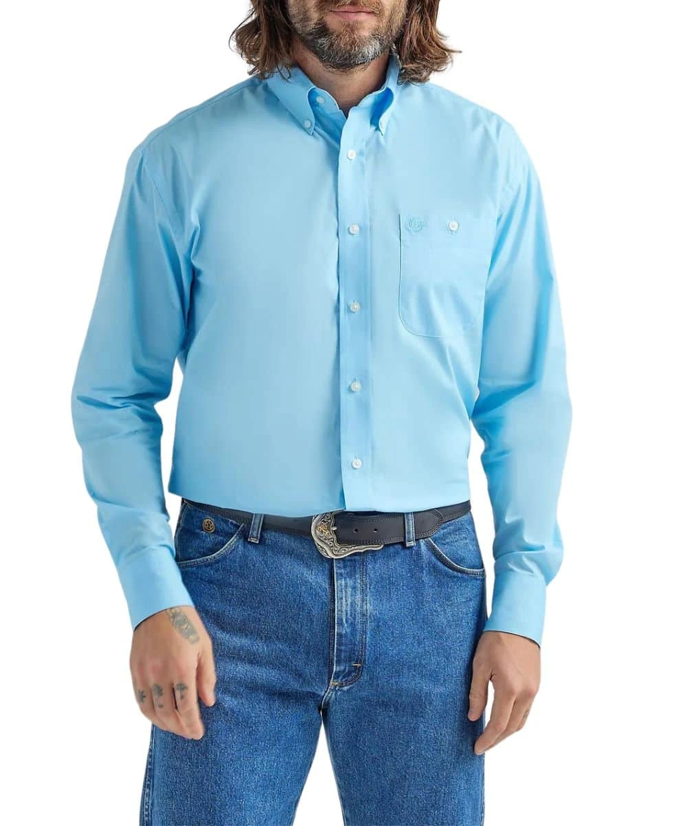 85% Cotton/15% Polyester; Long Sleeve; Button Down Collar, Placket, And Cuffs; Single Button Through Chest Pocket With Logo Embroidery; Straight Back Yoke With Pleat; Color: Baby Blue; Style #112324863