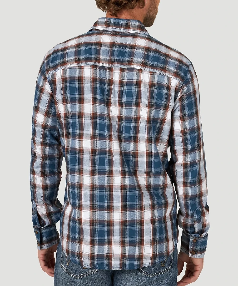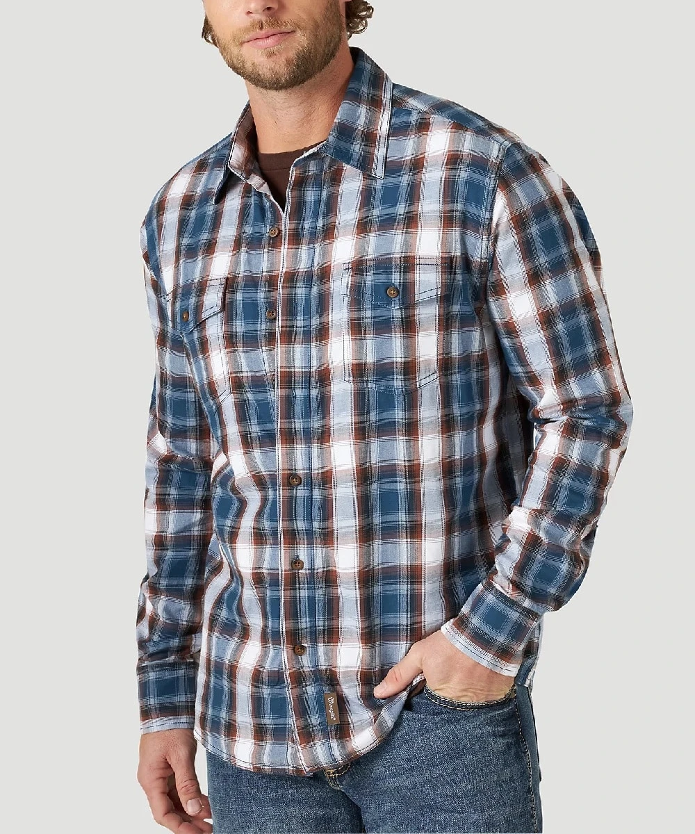 100% Cotton; Slim Fit; Long Sleeve; Spread Collar; Button Down Front And Cuffs; Two Button Flap Chest Pockets; Straight Back Yoke; Red, Blue And Black Plaid; Color: Moonlit Ocean; Style #112318824