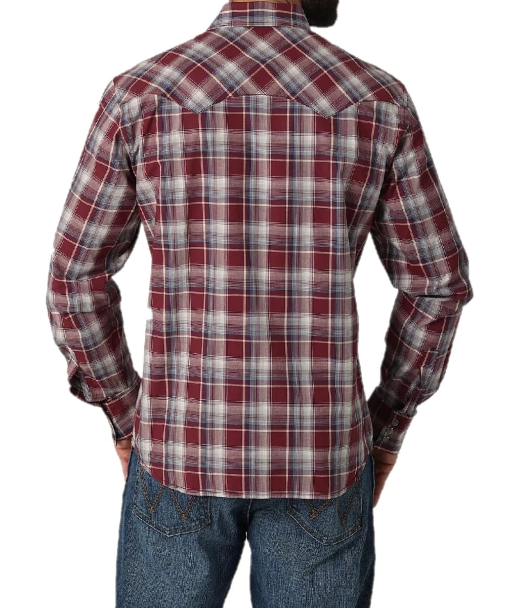 100% Cotton; Modern Slim Fit; Long Sleeve; Spread Collar; Snap Front Closure; Two Sawtooth Front Chest Flap Pockets With Double Snaps; Embroidery Logo On Left Chest Pocket; Two Single Point Front Yokes; One Double Point Yoke On Back; Color: Bourgogne; Style #112317117